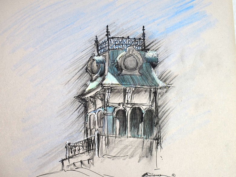 These two drawings are of the same building, the Columbia County Courthouse in Dayton. It has a small “widow’s walk”. A characteristic of Victorian architecture