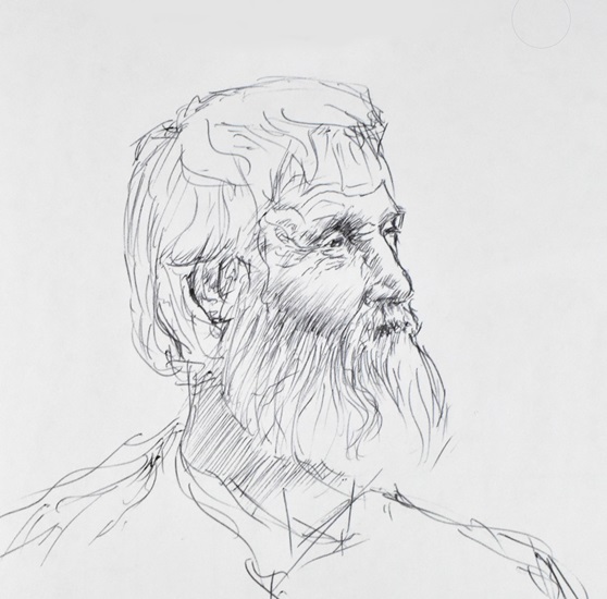 Old man. I saw this man and I thought it was an interesting face. He’s looking at something interesting. I think I captured that fascinated look in the expression of his face. I feel that if I had taken a photograph of this man’s face it wouldn’t have been that interesting. This is a classic quick sketch that I enjoy doing.